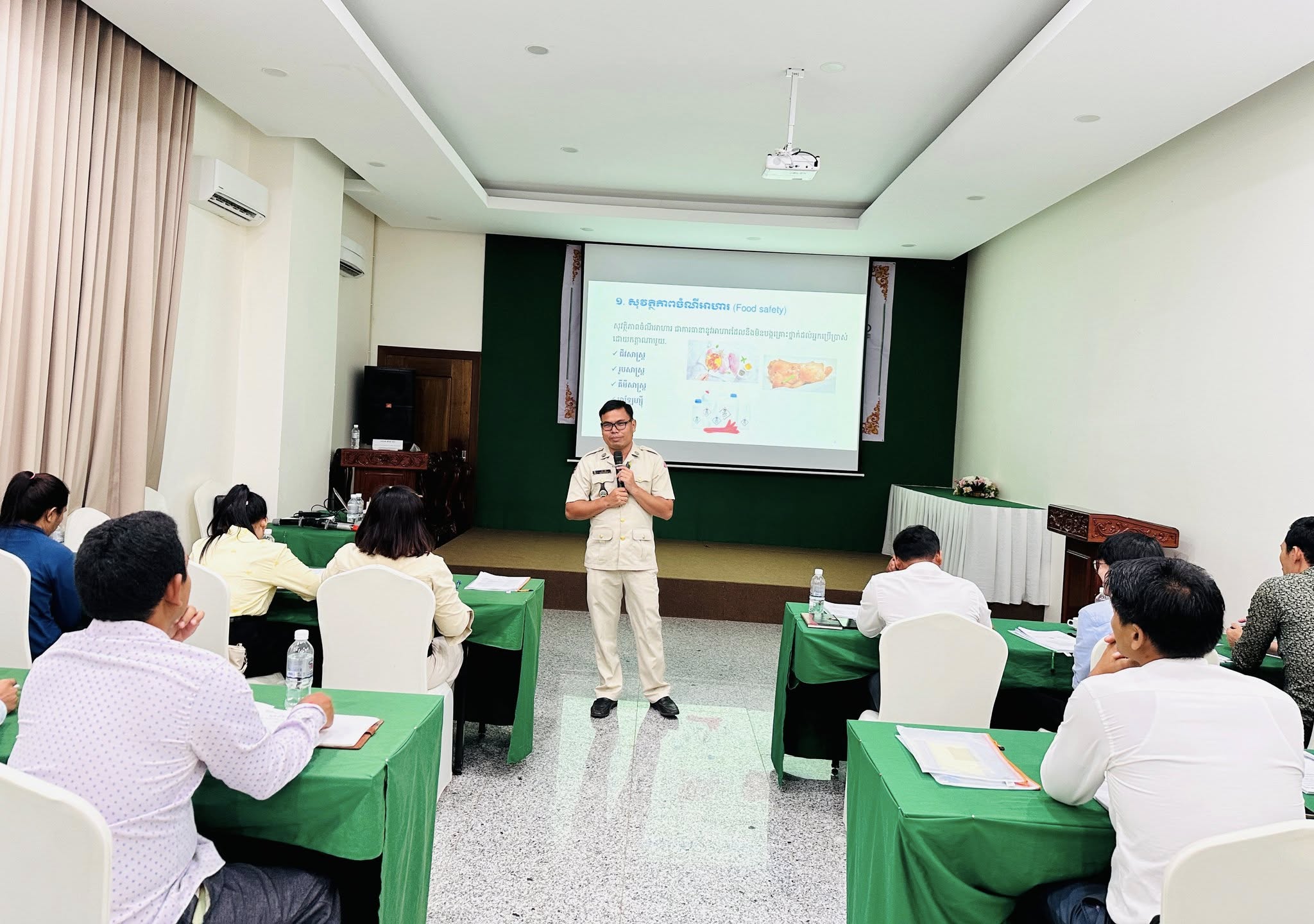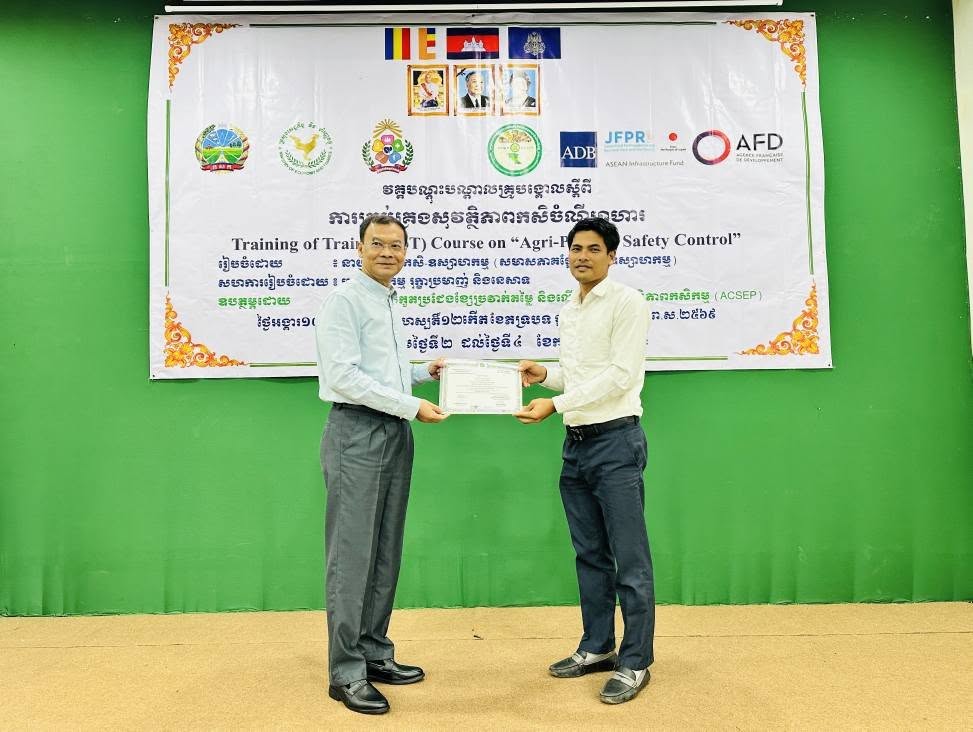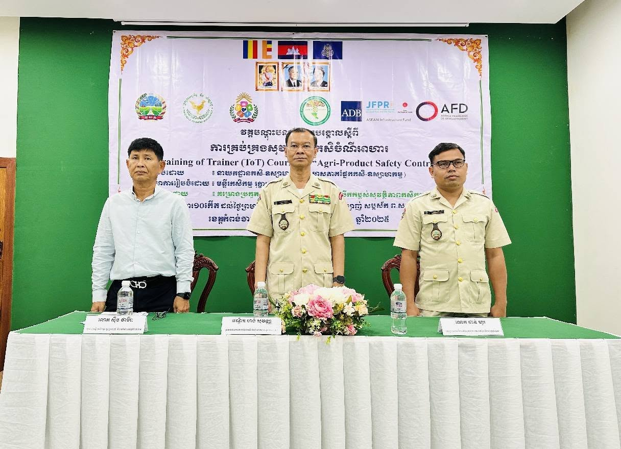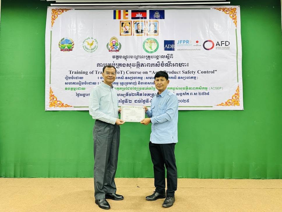 នៅថ្ងៃអង្គារ ១០កើត ដល់ថ្ងៃព្រហស្បត្តិ៍ ១២កើត ខែភទ្របទ ឆ្នាំម្សាញ់ សប្តស័ក ព.ស.២៥៦៩ ត្រូវនឹងថ្ងៃទី២ ដល់ថ្ងៃទី៤ ខែកញ្ញា ឆ្នាំ២០២៥ នៅទីរួមខេត្តកំពង់ចាម នាយកដ្ឋានកសិ-ឧស្សាហកម្ម ដែលជាអង្គភាពអនុវត្តគម្រោងនៃសមាសភាគផ្នែកកសិ-ឧស្សាហកម្មនៃគម្រោងប្រកួតប្រជែងខ្សែច្រវាក់តម្លៃ និងលើកកម្ពស់សុវត្ថិភាពកសិកម្ម (ACSEP) ដោយសហការជាមួយមន្ទីរកសិកម្ម រុក្ខាប្រមាញ់ និងនេសាទខេត្តកំពង់ចាម និងខេត្តត្បូងឃ្មុំ អង្គភាពអនុវត្តគម្រោងថ្នាក់ខេត្ត បានរៀបចំវគ្គបណ្តុះបណ្តាលគ្រូបង្គោលស្តីពី "ការគ្រប់គ្រងសុវត្ថិភាពកសិចំណីអាហារដល់មន្រ្តីជំនាញពាក់ព័ន្ធថ្នាក់ខេត្តនៃគម្រោង ACSEP" ក្រោមអធិបតីភាពបណ្ឌិត ហង់ សុវណ្ណ អនុប្រធាននាយកដ្ឋានកសិ-ឧស្សាហកម្ម និងជាប្រធានសមាសភាគផ្នែកកសិ-ឧស្សាហកម្ម តំណាងដ៏ខ្ពង់ខ្ពស់ ឯកឧត្តមបណ្ឌិត សរ ចិត្រា អគ្គលេខាធិការក្រសួង កសិកម្ម រុក្ខាប្រមាញ់ និងនេសាទ និងជានាយកគម្រោង ACSEP។